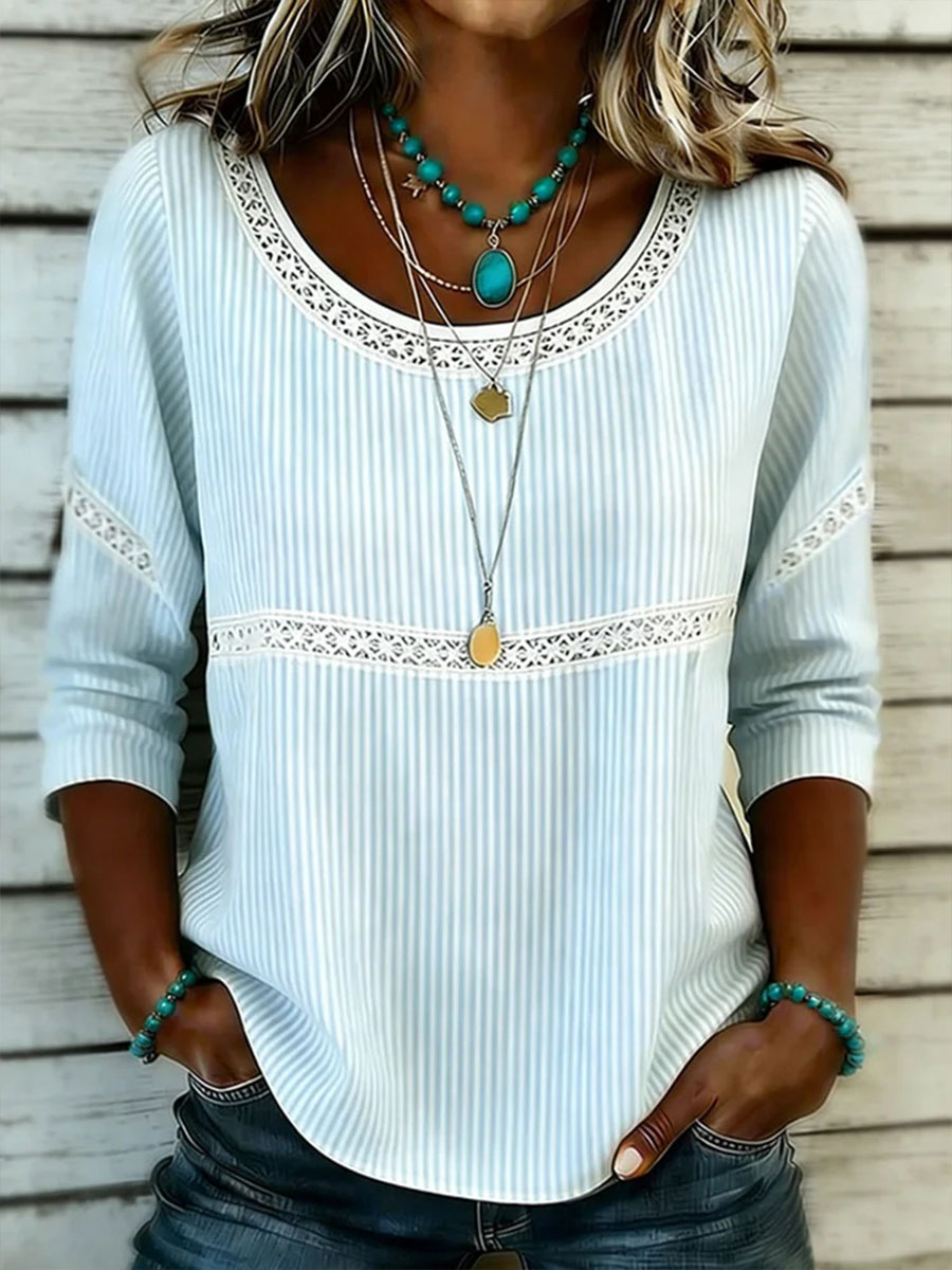 Frauen Gestreiftes Kunstdruck-Baumwoll-Leinen oberteil