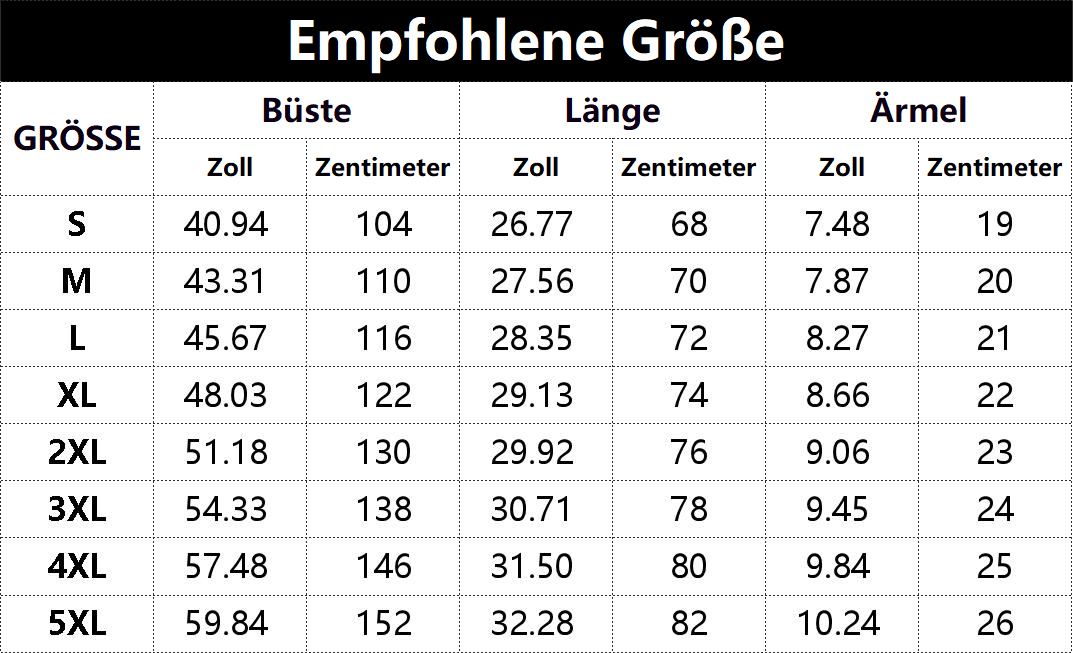* Diese Daten wurden aus der manuellen Messung des Produkts erhalten, es kann um 0,03-0,06 ZOLL/1-3 CM aus geschaltet sein
