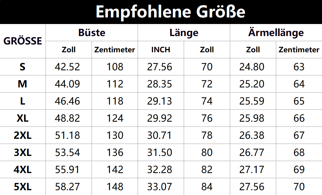 * Diese Daten wurden aus der manuellen Messung des Produkts erhalten, es kann um 0,03-0,06 ZOLL/1-3 CM aus geschaltet sein