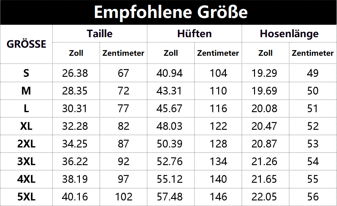 • Vorschlag: *Diese Daten wurden aus der manuellen Messung des Produkts erhalten, es kann um 0,03-0,06 ZOLL/1-3 CM aus geschaltet sein
