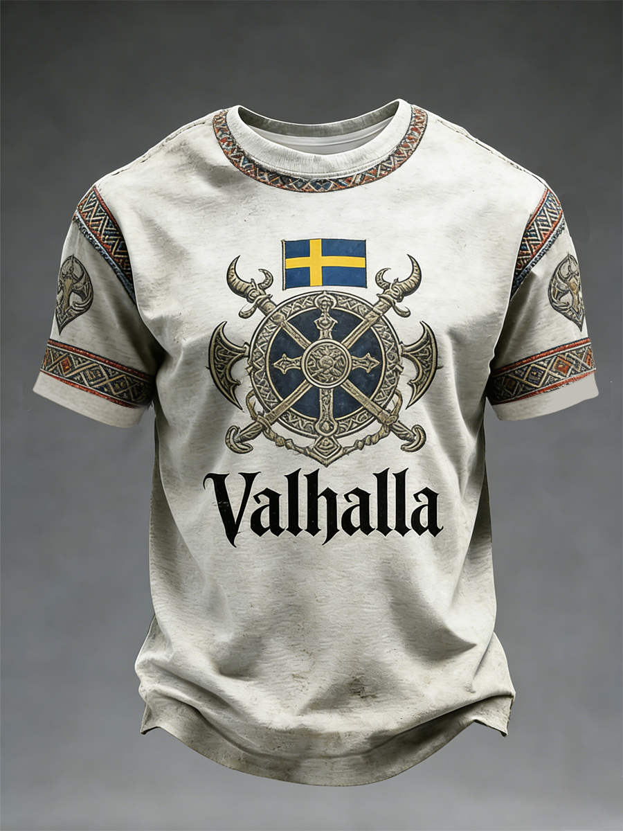 Herren T-Shirt im schwedischen Viking-Stil Val halla bedruckt