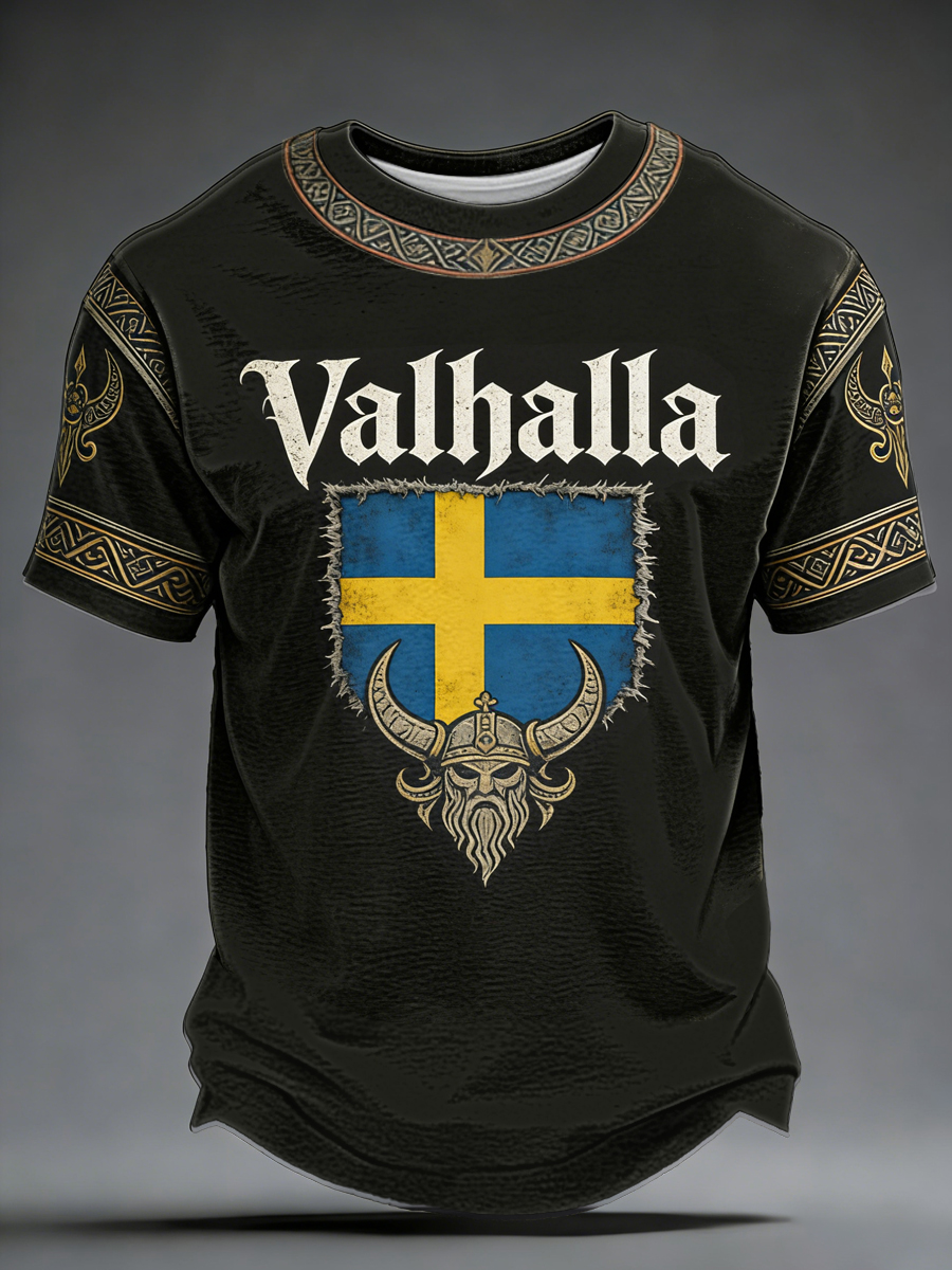 Herren T-Shirt im schwedischen Viking-Stil Val halla bedruckt