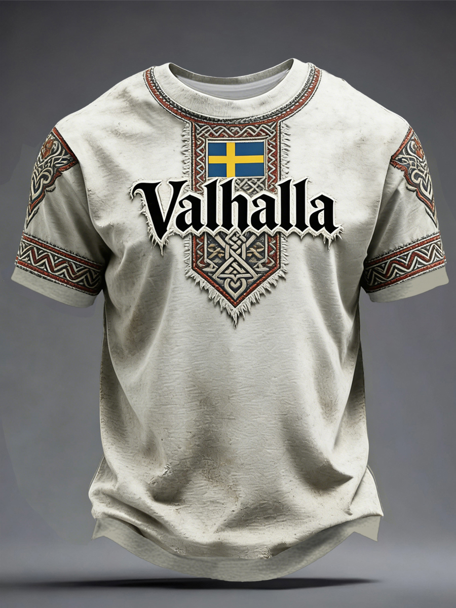 Herren T-Shirt im schwedischen Viking-Stil Val halla bedruckt